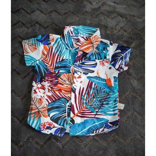 Ensemble pour bébé et petit garçon avec motif hawaïen idéal pour la plage, la maison, et les petites sorties.