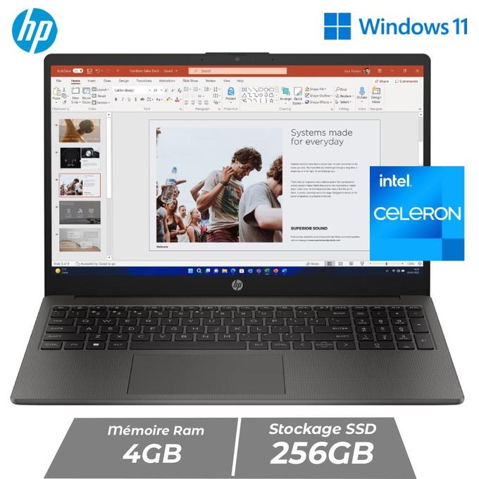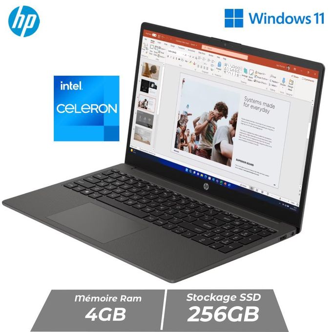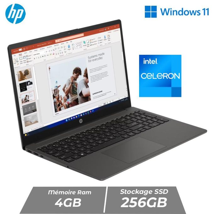 HP 250 G9 – Intel Celeron Dual Core – 4GB RAM – 256GB SSD – Écran 15,6 pouces – Windows 11 – Gray